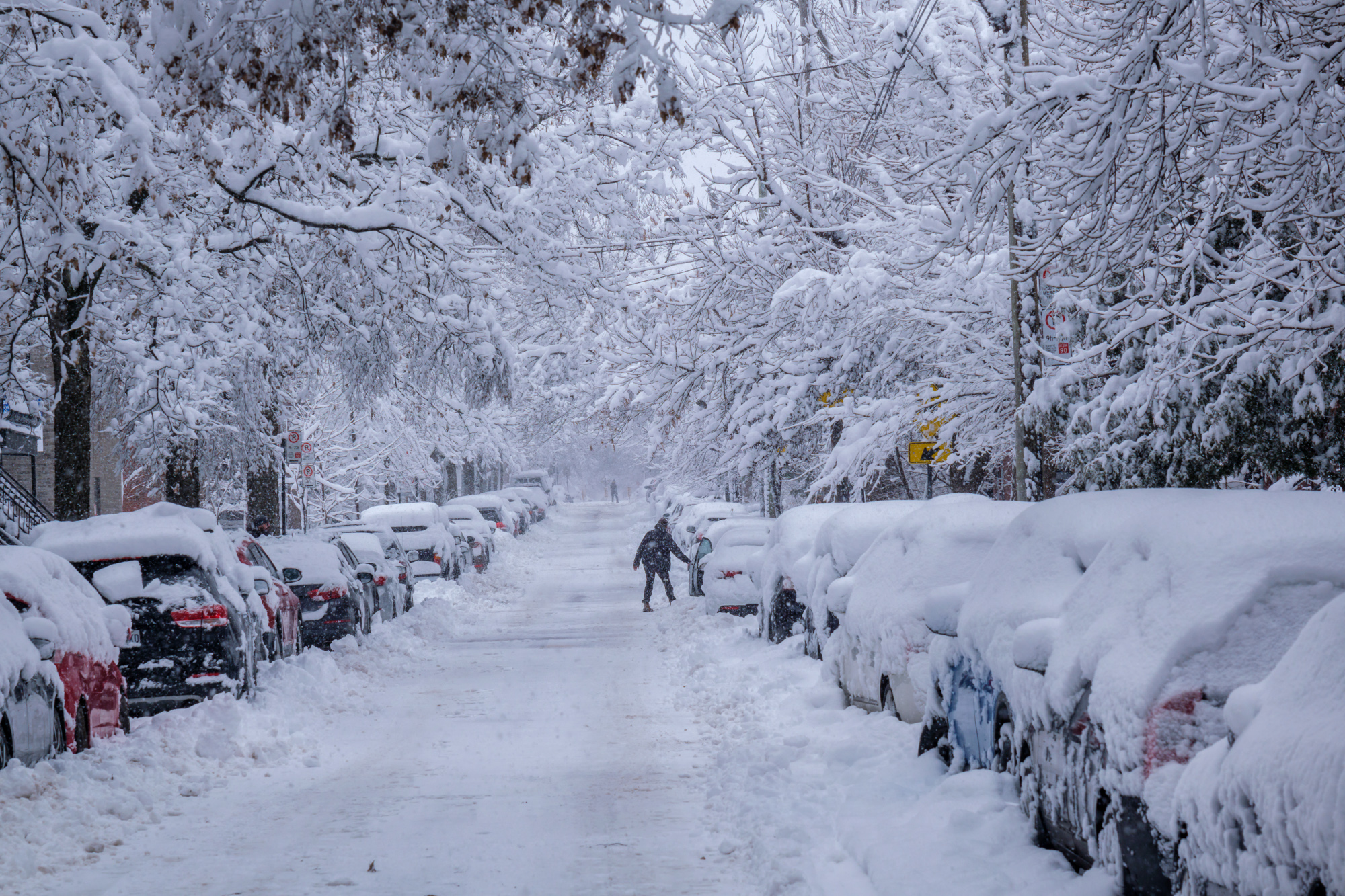 Montreal, Canada – 17 December 2022: Cars covered with snow during snow storm.