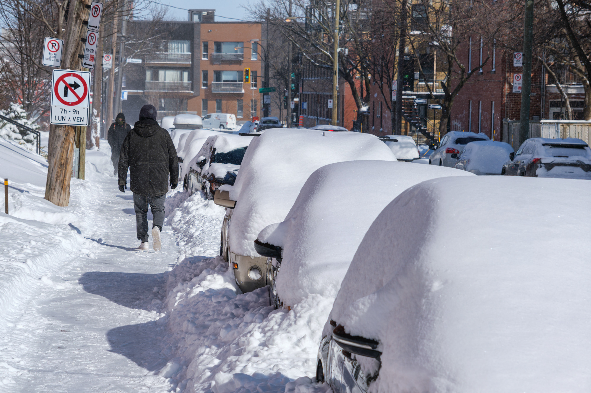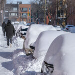 Montreal, Canada – 18 February 2022: Cars covered with snow after snow storm.