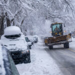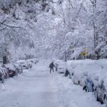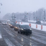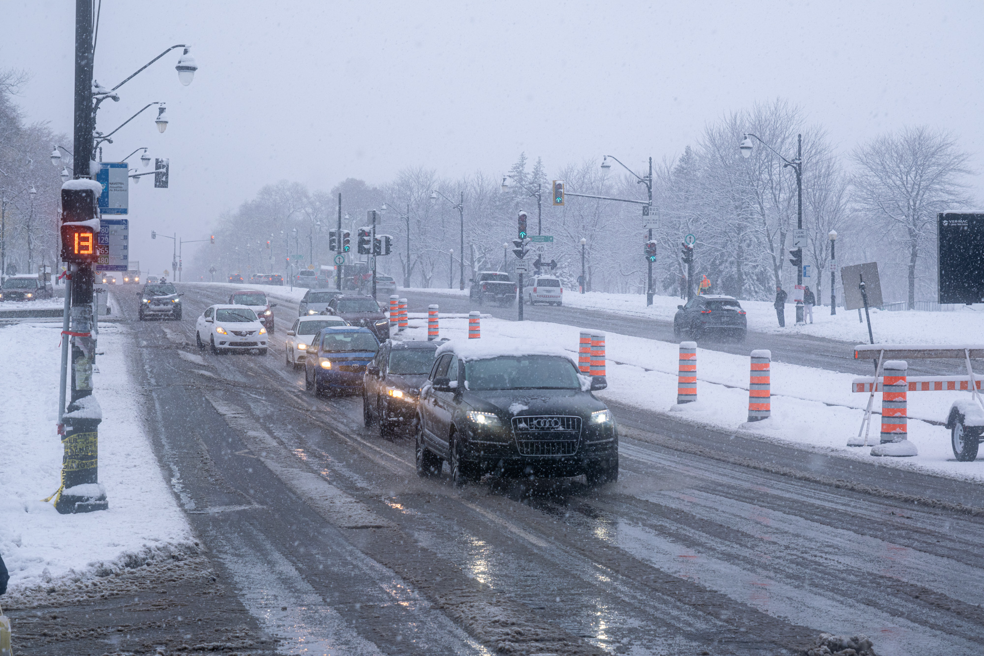 Montreal, Canada – 16 November 2022: Traffic on Park Avenue during first snow storm of the season.